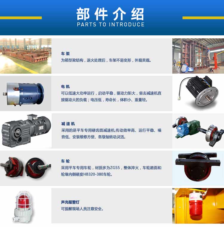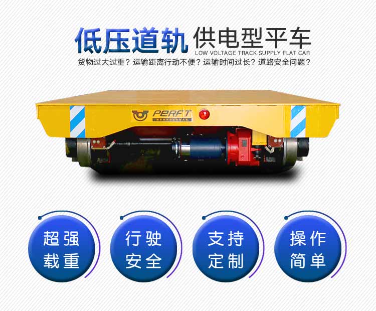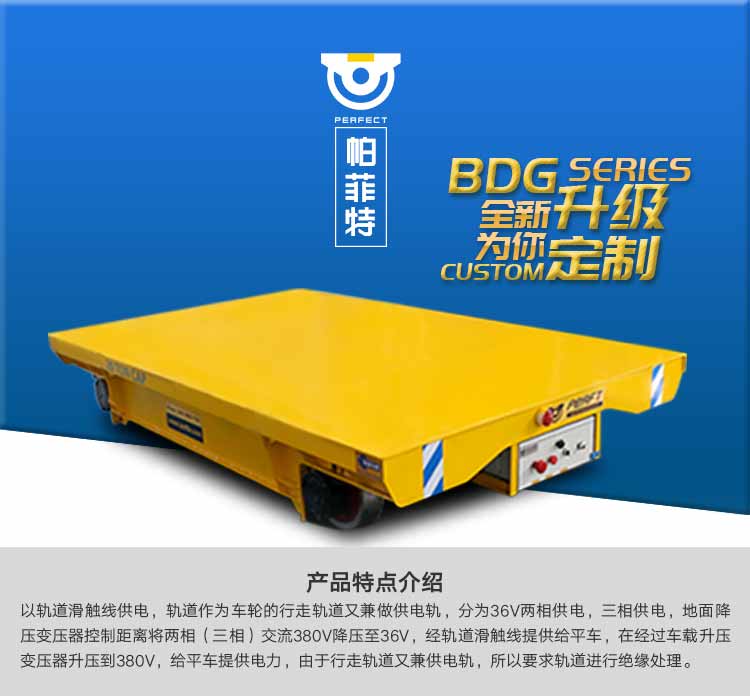 爱彩网特点:BDGZ 型产品是将交流 380V 的电源通过变压器降压至交流 36V 两相电源,分别接至两根道轨上,轨道平车上的车轮将道轨上的交流 36V电源引入车载电器箱,经过整流模块将交流 36V 整流至直流 36V,再通过直流控制系统控制直流电机,使平车启动、停止、前进、后退、调速等。该平车能够在 S 型轨道、弧形轨道及高温