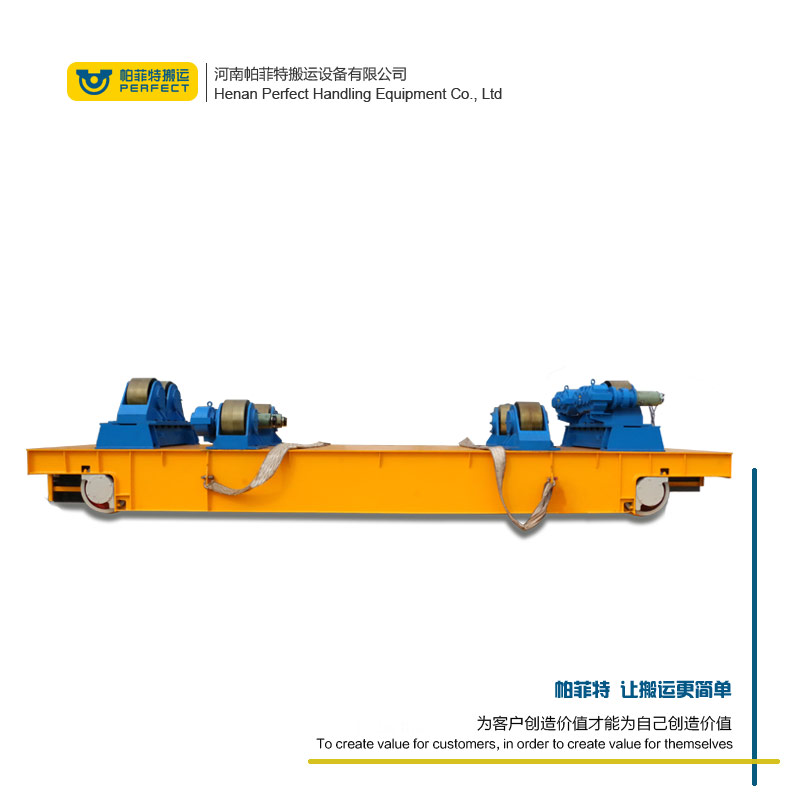 特点:1、外形尺寸:L(4000mm)×W(2000mm)×H(500mm)-可定制 2、承重:Max.50吨。 3、承载高度:Max.500mm(小车顶部以上);满负荷运行可实现急停,运行平稳。