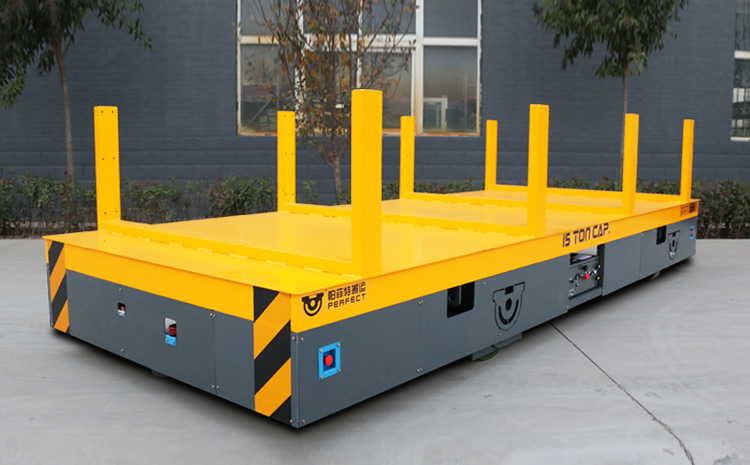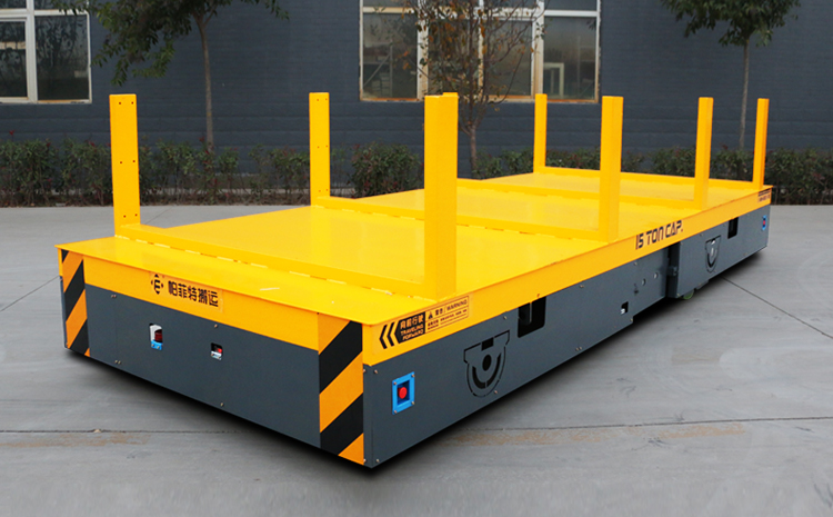 BWP系列无轨电动平车由电源、传动机构、钢结构承重架、转向系统、行走机构、控制模块以及故障诊断模块组成。通常,我们选择蓄电池、 电缆、发电机作为该系列车的电源,电源经过电器控制模块系统,给牵引电机提供电力,实现无轨转运车的启动、停止、前进、后退和转向以及其它功能。该系列车可实现360原地旋转。车上均配有安全警示和安全检测装置,遇到行人或障碍物立即报警并自动停止,配备全自动智能充电机。无轨转运车上还可以加装定位装置、夹紧装置、升降平台等其它辅助装置以满足不同场合的使用需求。该系列车可以装配PLC控制系统,实现完全自动化控制。
